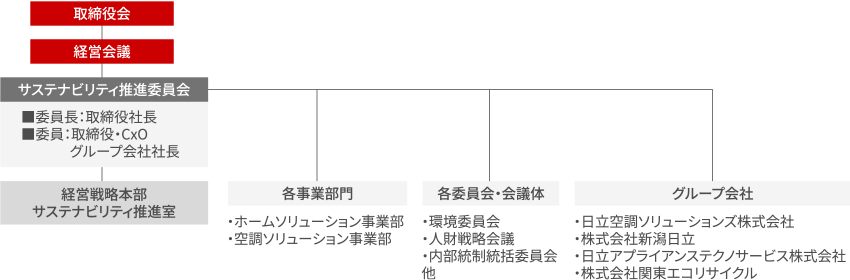 2023年度からは当グループ会社も委員会に参画し、日立グループおよび当グループの方針・活動状況を当グループ全体で共有し、グループワイドにサステナブル経営を推進しています。