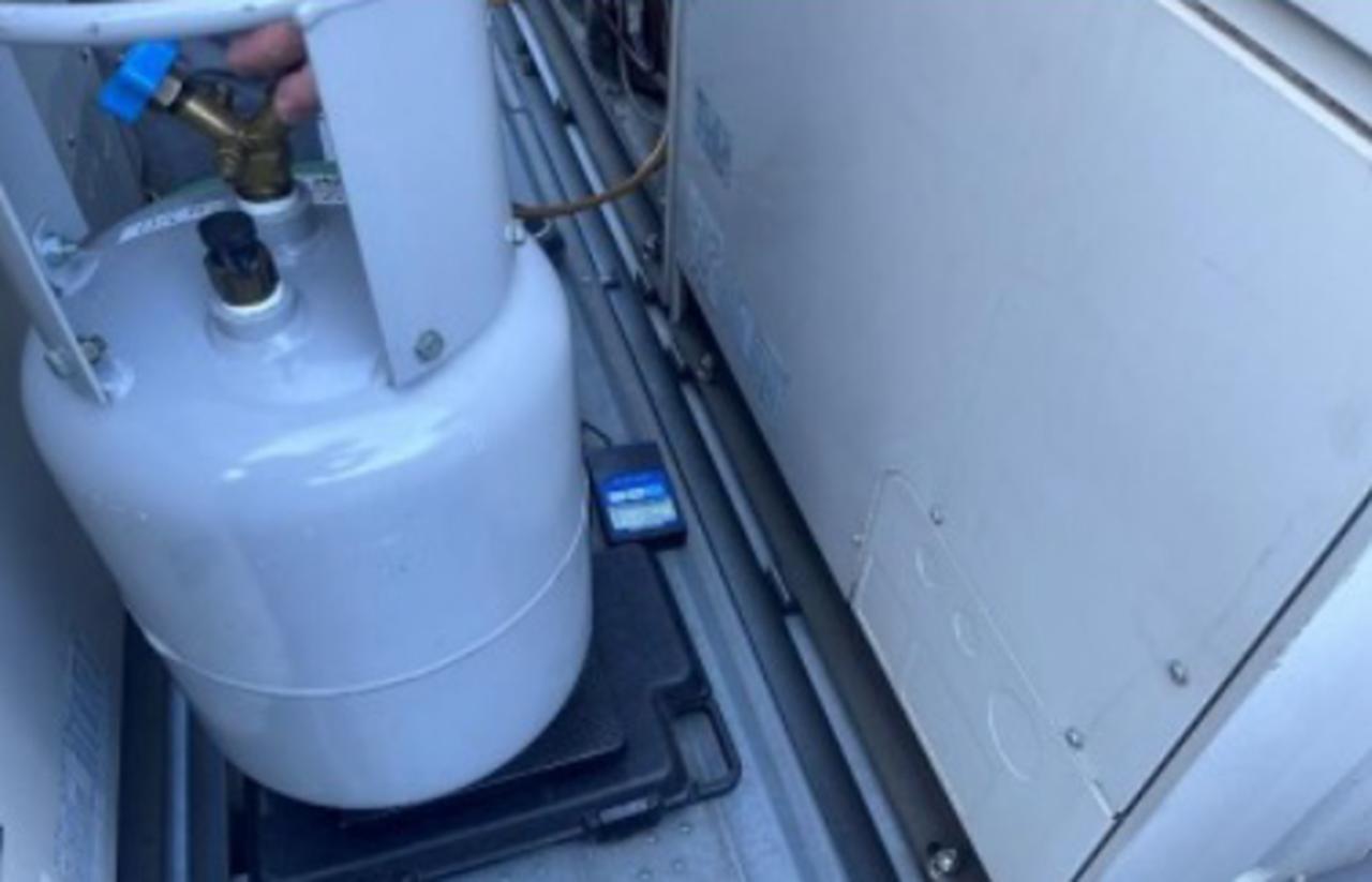 ビル用マルチエアコン 室外ユニットでの冷媒回収の状況