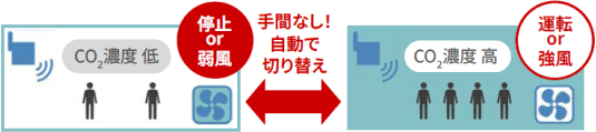 センサーで測定したCO2濃度*4に従い、運転を自動的に切り替えます*5。