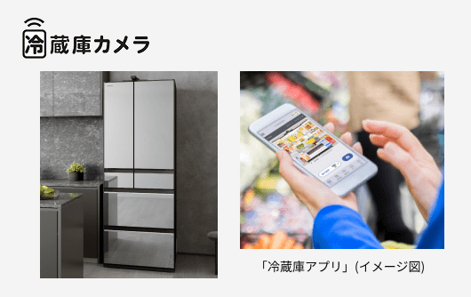 専用アプリを通して外出先で庫内の状態を確認したり、食材の管理ができる冷蔵庫カメラを搭載