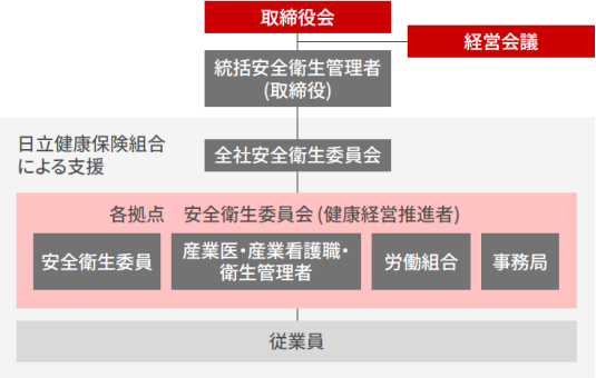 日立グループの基本方針「安全と健康を守ることは全てに優先する」 のもと、当社では、災害の未然防止とともに従業員の健康維持・増進活動である「健康経営」を推進しています。