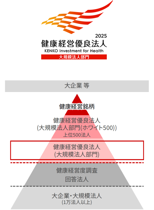 当社は、これまでの「健康経営」の取り組みが優良であることが認められ、経済産業省および日本健康会議主催の「健康経営優良法人(大規模法人部門)」に 2022年~2025年の4年連続して認定されました。なお、当グループ会社においても「健康経営優良法人(大規模法人部門/中小規模法人部分)」に2022年~2025年の4年連続して認定されています。