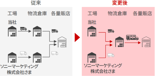 ソニー製品のマーケティングおよび販売を担うソニーマーケティング株式会社さまと当社は、国内の物流に関する社会的課題の解決や環境負荷の軽減をめざし、2024年4月から両社が持つ物流プラットフォームを相互利用した共同物流に取り組んでいます。
