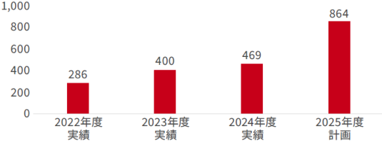 当社では、事業成長に必要なデジタル人財の確保に向けた取り組みを強化しています。日立グループ内外からプロフェッショナル人財を積極的に採用する一方で、日立グループ独自のDX研修体系の活用、実務経験を通じた人財育成、デジタルスキル活用支援プログラムの充実など、内部人財の育成にも注力しています。これらの施策により、2025年度末までに約850名規模のデジタル人財の育成を目標としており、継続的に組織全体のデジタル競争力強化を進めています。